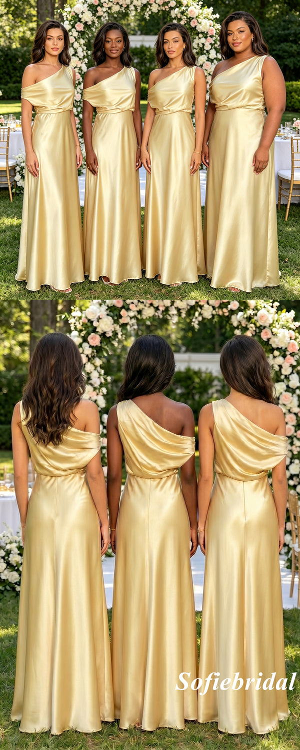 Shimmering Gold Satin Evening Gown - One Shoulder Prom & Wedding Party, SFWG00627