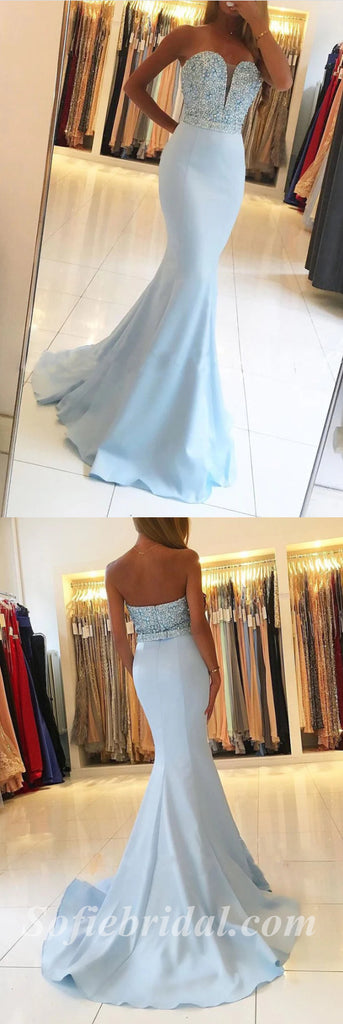 Sexy Sequin Top Satin Bottom Sweetheart V-Neck Sleeveless Mermaid Long Prom Dresses,SFPD0401