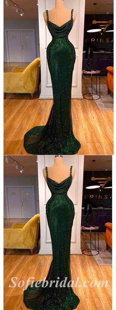 Sexy Simple Sequin Spaghetti Straps Cowl Sleeveless Mermaid Long Prom Dresses,SFPD0380