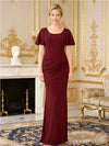 Elegant Crepe Short Sleeves Scoop Sheath Mother Of The Bride Dresses, SFM011