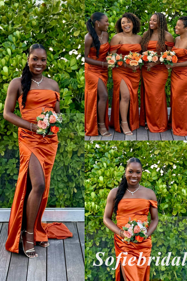 Sexy Satin Burnt-Orange One Shoulder Side Slit Mermaid Bridesmaid Dress For Fall Wedding Party, SFWG00629